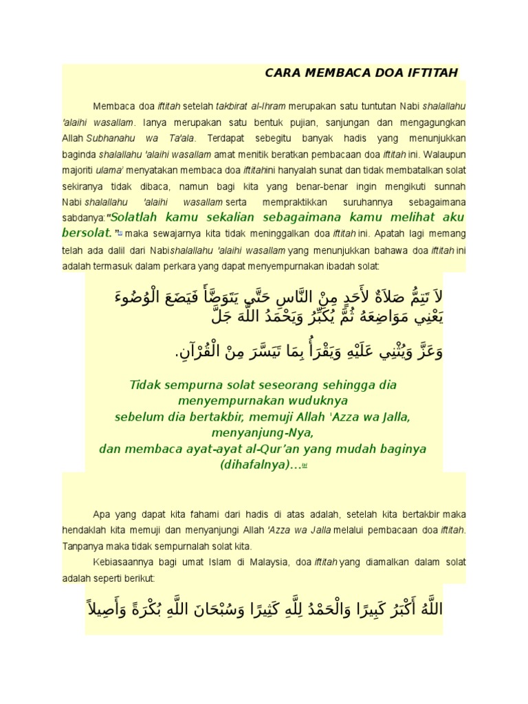 Related : Doa Iftitah Dalam Solat : Doa istiftah adalah doa yang dibaca ketika shalat, antara takbiratul ihram dan ta'awudz sebelum membaca surat al fatihah..