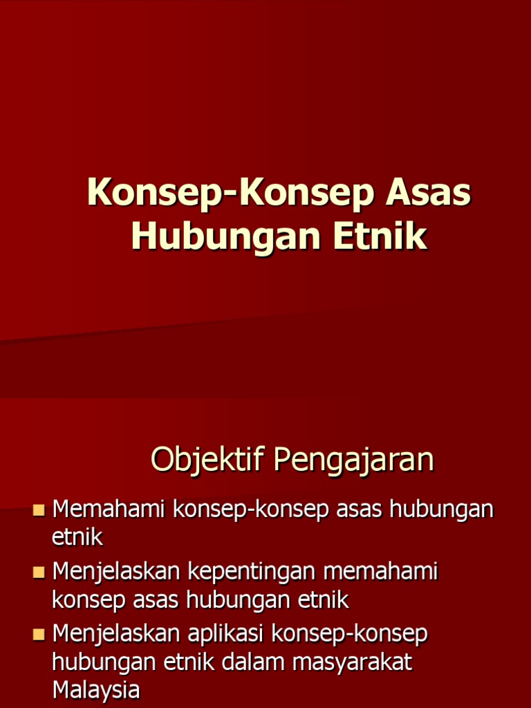 Konsep-Konsep Asas Hubungan Etnik - Hasil pembelajaran mendefinisikan dan membincangkan konsep asas hubungan etnik membezakan konsep perpaduan dan integrasi kaum mengenalpasti tahap hubungan etnik menjelaskan komposisi etnik di malaysia menjelaskan islam meraikan kepelbagaian etnik.