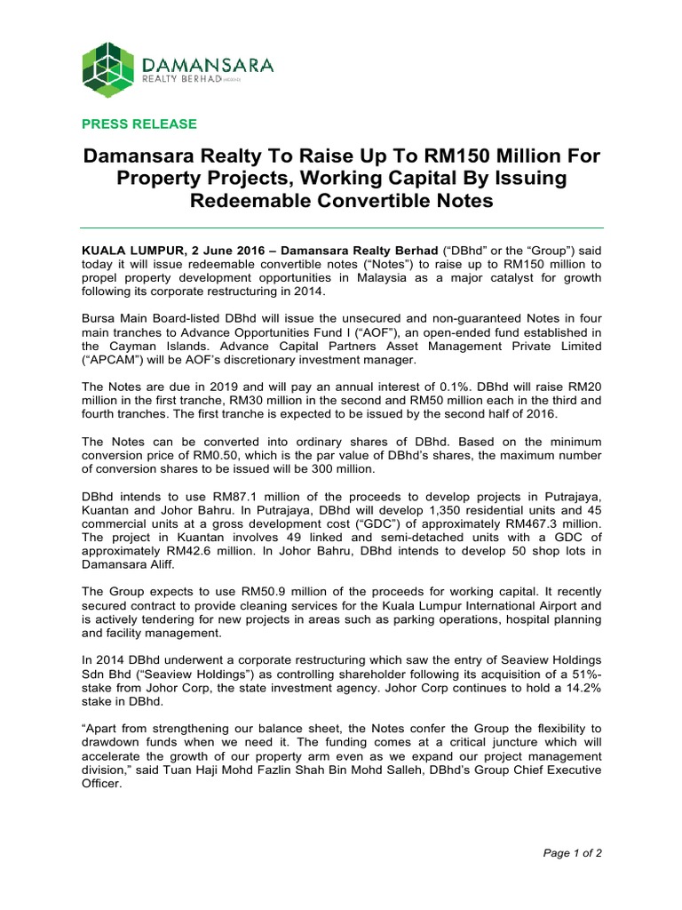 Damansara holdings berhad, formerly damansara realty berhad, is an investment holding company. Show unit dc residensi no. Group assignment (group no.3) 2019. Capital reduction of rm0.84 per ordinary share of rm1.00 each in damansara realty berhad. Join mergr and gain access to damansara realty bhd's m&a summary, the m&a summaries of companies just like it, as well as recent m&a activity in the construction sector.