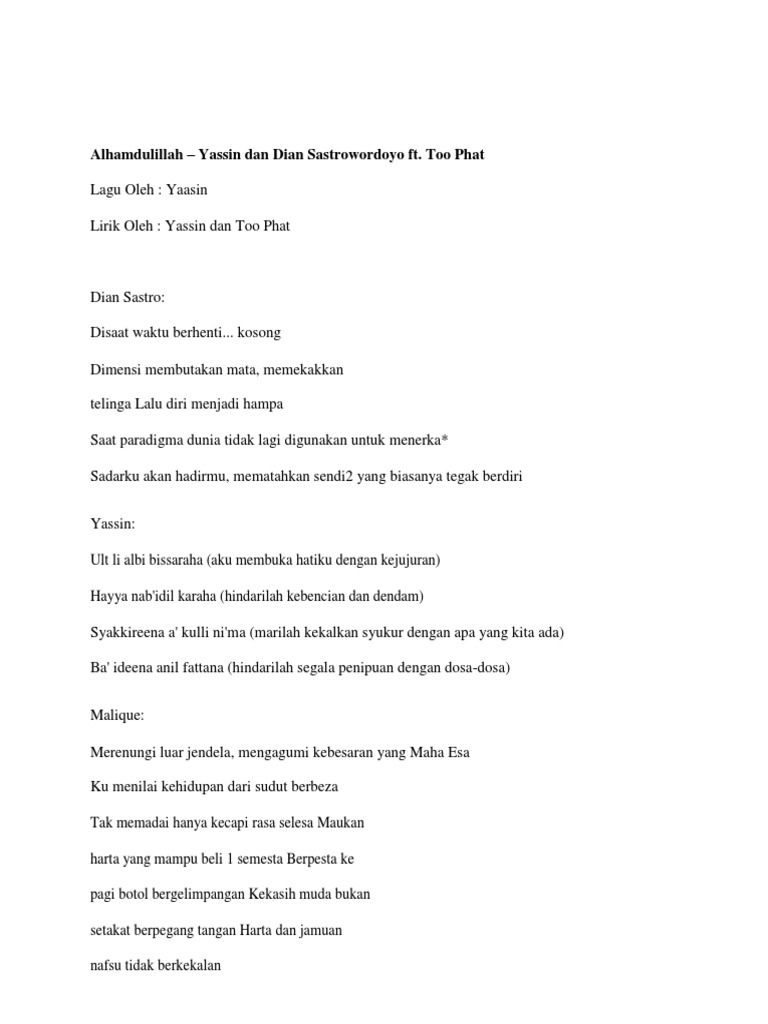 Related : Alhamdulillah Too Phat Lirik / Alhamdulillah Malay Lyrics And Music By Too Phat Ft Dian Sastro Arranged By Emilfadilah - We did not find results for:.