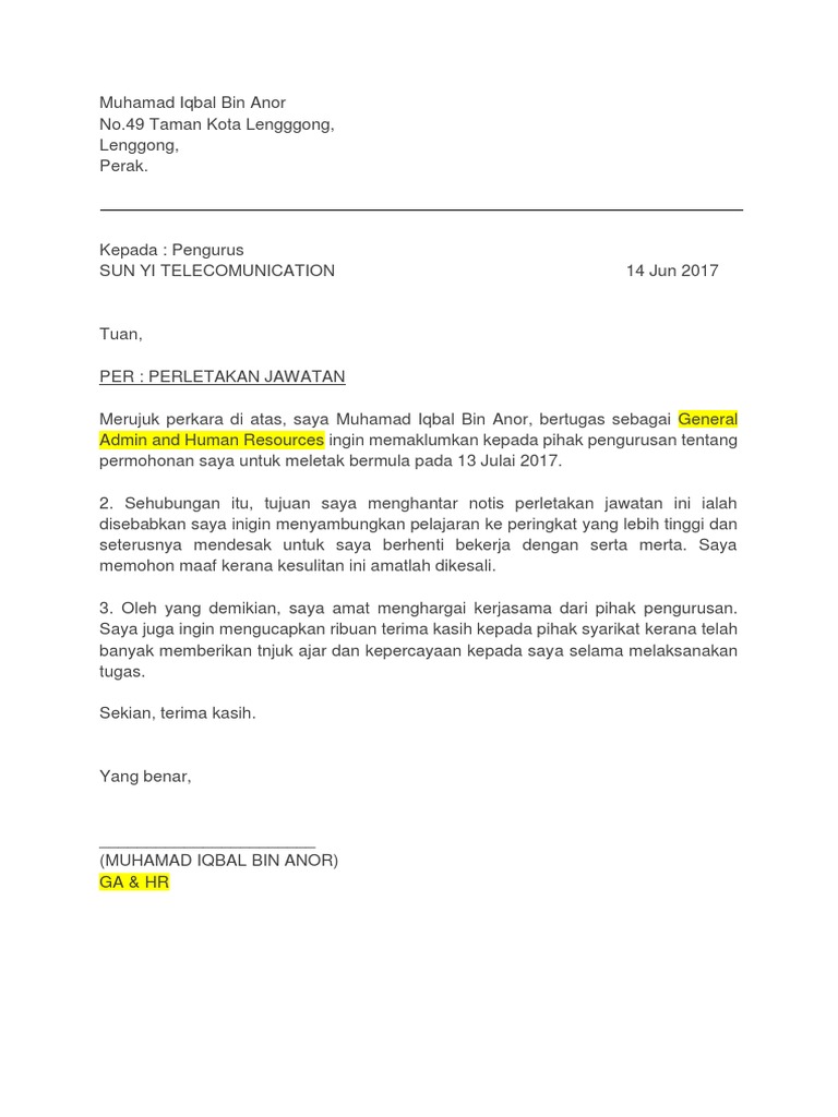 Khas untuk mereka yang nak berhenti kerja tapi masih pening nak buat surat rasmi di sini dikongsikan surat berhenti kerja yang mudah dan ringkas dalam bahasa melayu dan inggeris bagi notis perletakan jawatan sama ada 24. Contoh surat berhenti kerja bahasa melayu picture places. Ia mungkin satu titik yang baru bagi anda. Memandangkan entri saya mengenai surat permohonan kerja / contoh resume mendapat sambutan yang meggalakkan, saya rasa ada baiknya saya tulis entri mengenai sampel surat perletakan jawatan pula, ye lah kalau nak mohon kerja lain bagi yang sedang bekerja mestilah nak kena tender surat. Jadi, apakah contoh surat berhenti kerja yang betul? Contoh surat berhenti kerja ini adalah dalam bahasa melayu. Format surat resign (surat pengunduran diri kerja). Surat beranak salinan kad pengenalan salinan surat berhenti sekolah salinan sijil persekolahan surat. Writing a surat berhenti kerja or resignation letter should be no problem to many. #2 surat rasmi berhenti kerja serta merta. Berikut contoh surat pengunduran diri yang dapat anda jadikan refrensi. Surat lamaran merupakan perwakilan pertama pelamar untuk menentukan apakah akan lanjut ke tahap berikutnya atau tidak. Surat pengunduran diri karyawan kontrak.